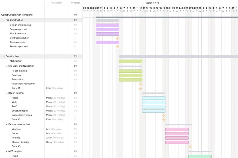 - Detailed project schedule